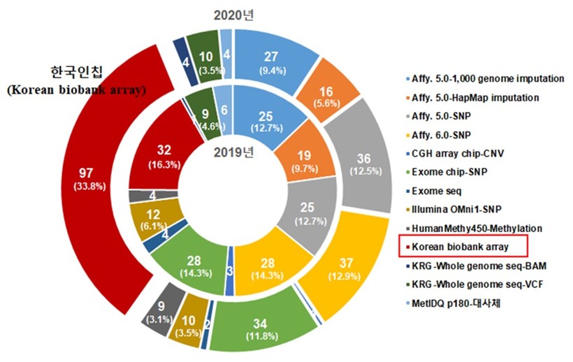 한편, 국립중앙인체자원은행에서는 한국인유전체역학조사사업과 국민건강영양조사사업, 만성질환 연구사업 등에서 확보된 고품질 인체자원의 공개범위를 지속해서 확대하고 있다. 지난해 말 기준 누적 990여 연구과제에 인체 자원을 분양해 570여 편 이상의 논문과 32건의 특허 활용성과를 창출했다.