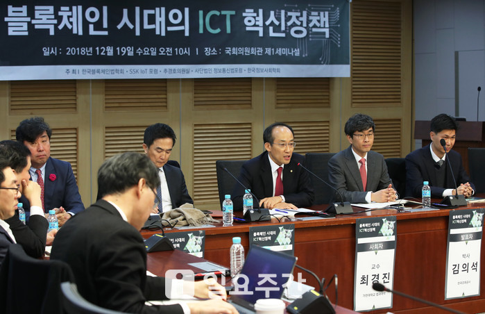 | ▲ 지난해 12월 서울 여의도 국회 의원회관에서 열린 블록체인 시대의 ICT 혁신정책 토론회 장면. |
