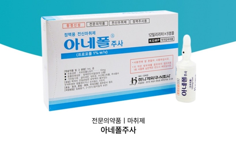 ▲ 프로포폴 성분의 전신마취제 '아네폴'.(사진=하나제약 홈페이지 캡쳐) |