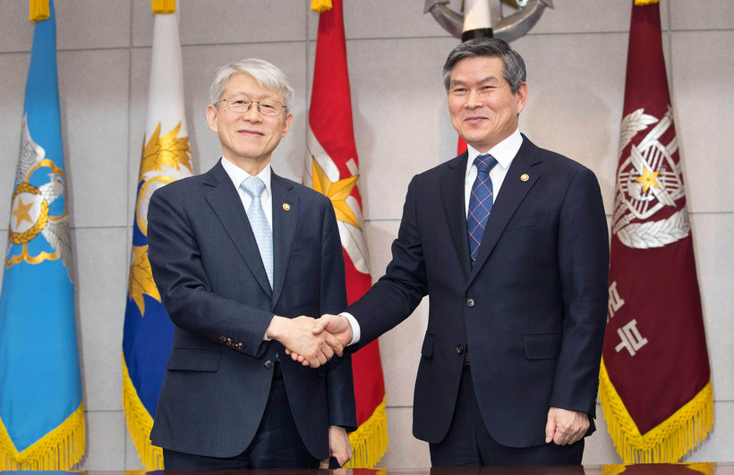 | ▲ 최기영(왼쪽) 과학기술정보통신부 장관과 정경두 국방부 장관 (사진=과기정통부) |