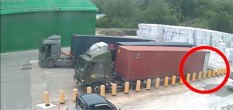 ▲ 사고직후 동일한 방식으로 작업 진행(경사진 곳에서 컨테이너 문 열기). (사진=공공운수노조 화물연대본부) |