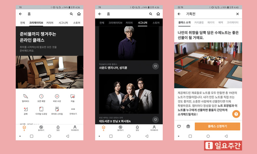 클래스 101이 여느 취미앱과 완벽하게 차별화되는 부분은 바로 '시그니처 클래스' 코너다. 의미 그대로 클래스101표 명품 강좌로, 해당 분야에서 최고의 자리에 오른 셀러브리티들이 직접 운영하는 강의다.