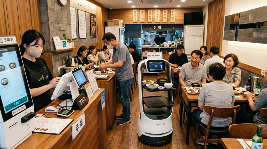 설비 도입 이후 점포의 운영 방식도 바뀐다. 동선이 재설계되고 테이블 회전 구조가 달라진다. 메뉴는 단순화되고 홀 인력은 주문과 서빙이 아니라 고객 응대와 관리 중심으로 이동한다. 기술은 단순히 인력을 대체하는 것이 아니라 점포 운영 방식을 다시 설계하게 만든다.