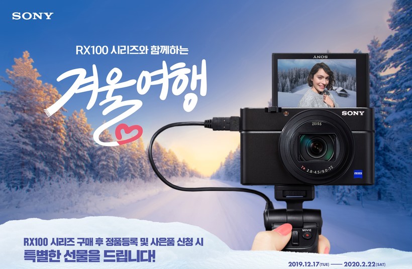 겨울 휴가 및 방학 시즌을 맞아 최신 제품인 RX100 VII을 포함하여 이벤트 기간 중 해당 제품을 구매하고, 2020년 2월29일까지 소니코리아 고객지원 사이트에서 정품등록 및 사은품 신청을 완료하면 다양한 사은품이 제공된다.